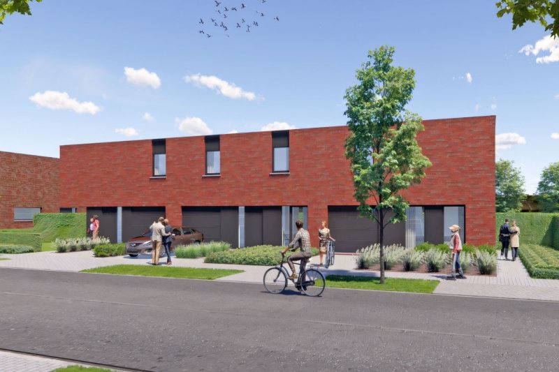 GELIJKVLOERS: inkomhal met toilet, trapruimte met vestiaire, volledig ingerichte open keuken, eet- en zitplaats, garage met wasplaats/berging.