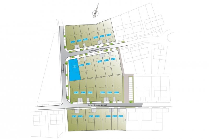 GELIJKVLOERS: inkomhal met toilet en vestiaire, trapruimte, volledig ingerichte open keuken, eet- en zitplaats, garage met wasplaats/berging.