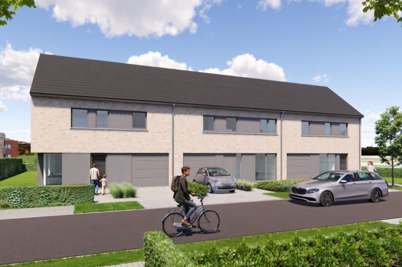 GELIJKVLOERS: inkomhal met toilet en vestiaire, trapruimte, volledig ingerichte open keuken, eet- en zitplaats, garage met wasplaats/berging.